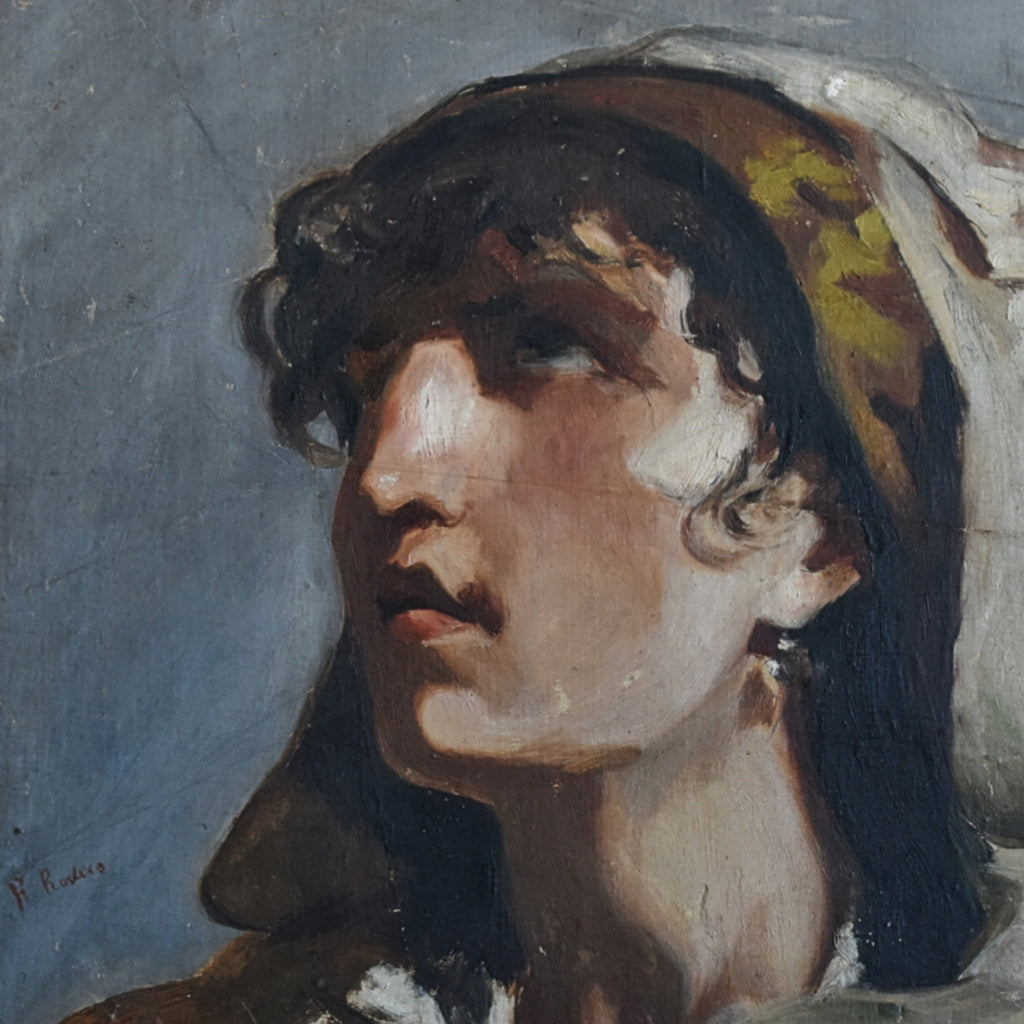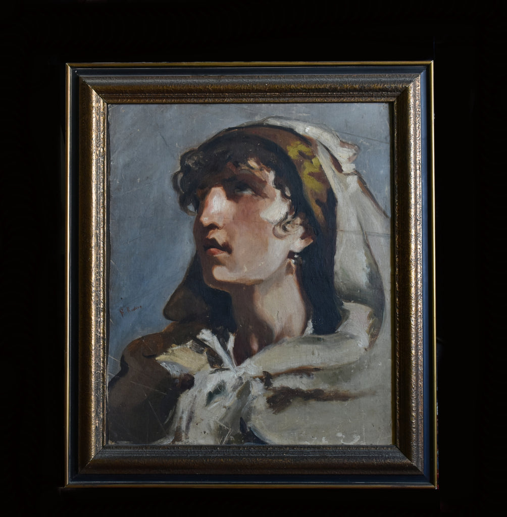 Spanish Portrait of A Woman in Head Scarf, Circa 1900-1920.