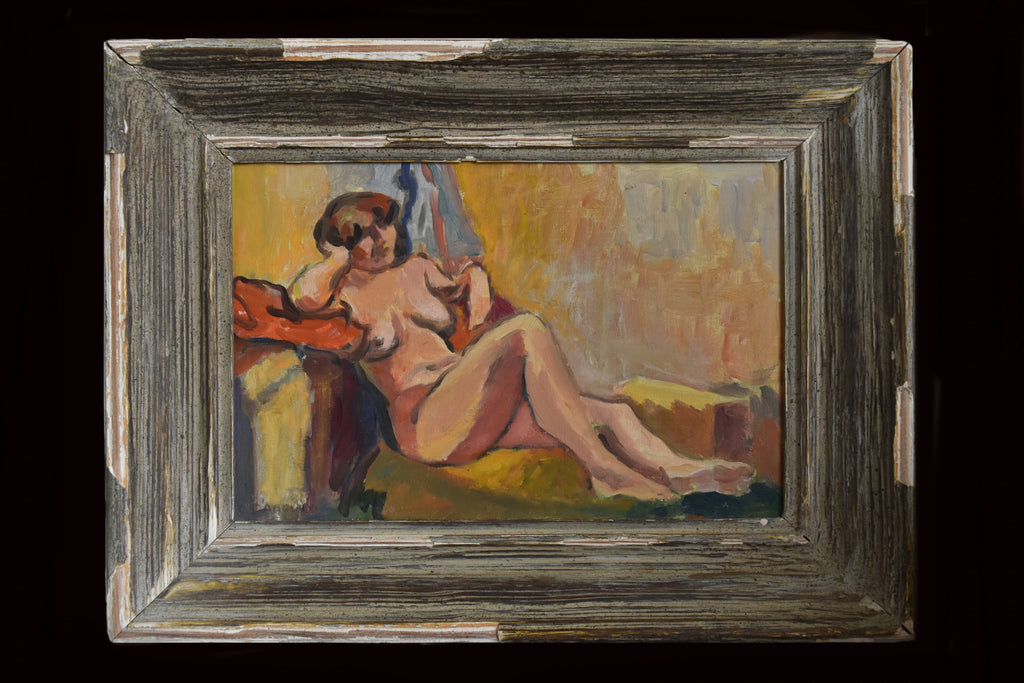 French Impressionist Oil on Canvas of a Recumbent Nude.