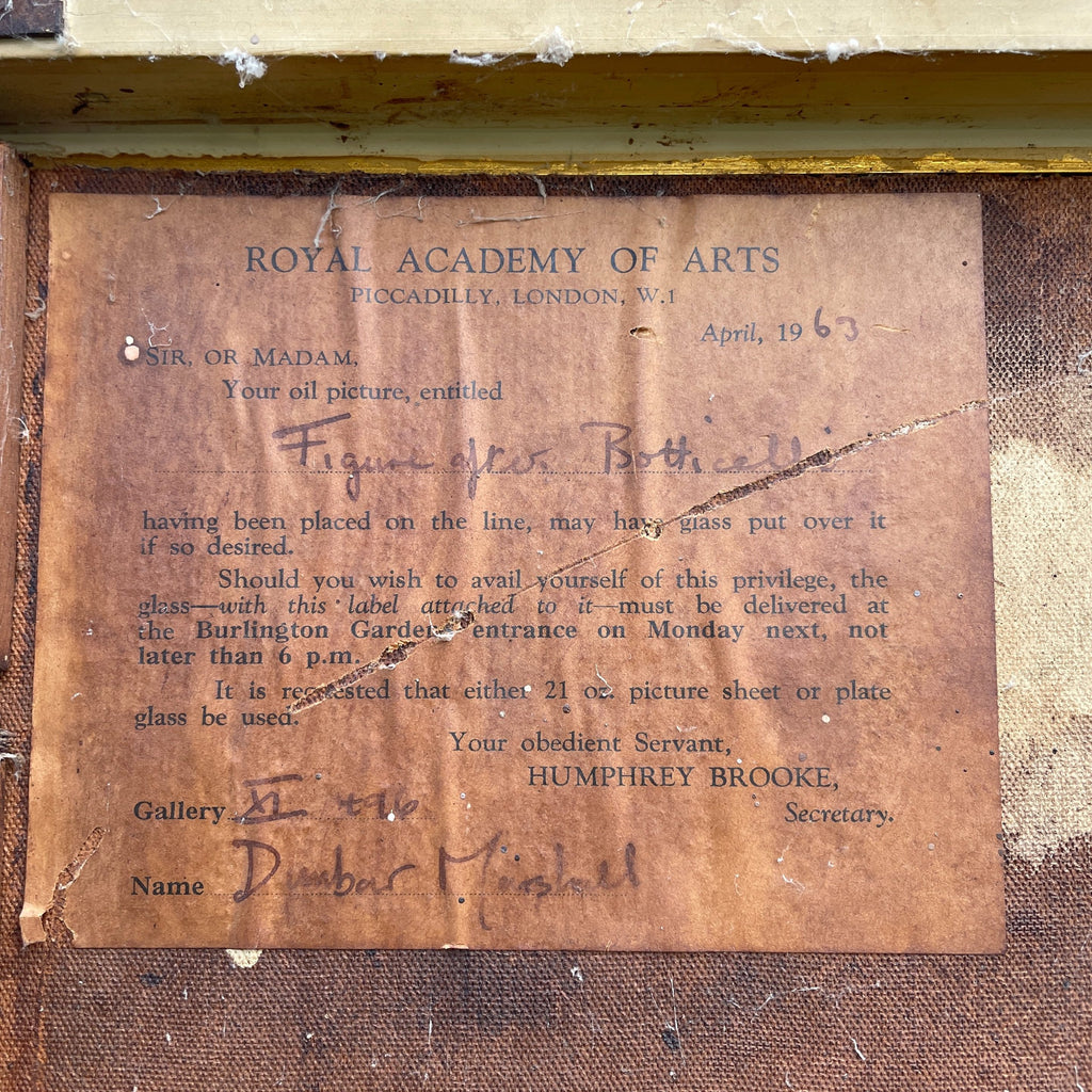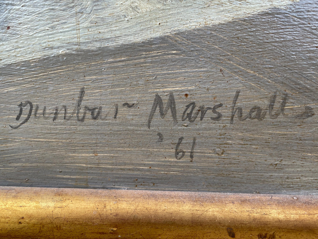 Painted by the known British artist Dunbar Marshall RBA 1918-2001. Signed and dated 1961. The painting was exhibited at the Royal Academy of Arts in 1963.