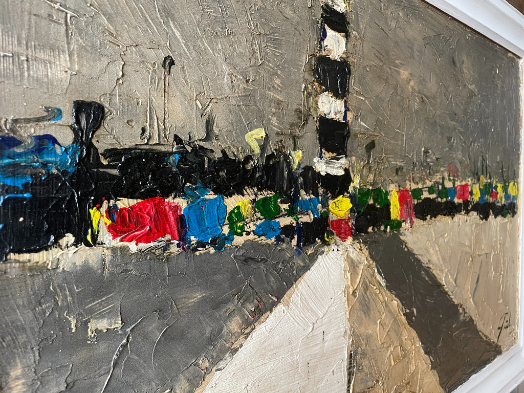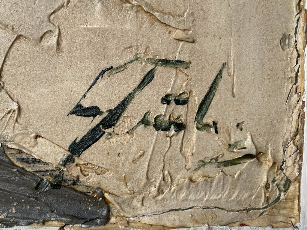 Heavily textured Impasto Knife work by a confident hand. Appealing use colour combinations.