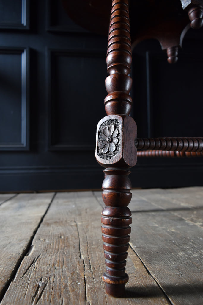 Extensively carved decoration throughout with leaved flower heads and Clovers within fine pokerwork.