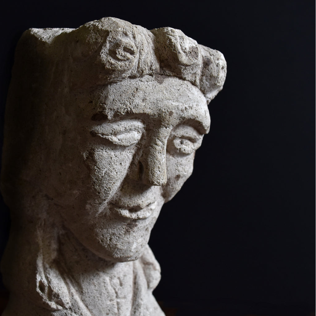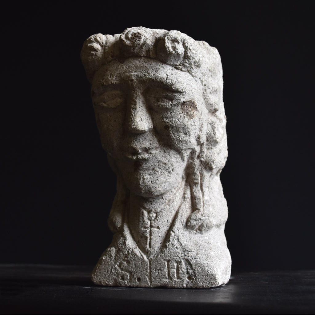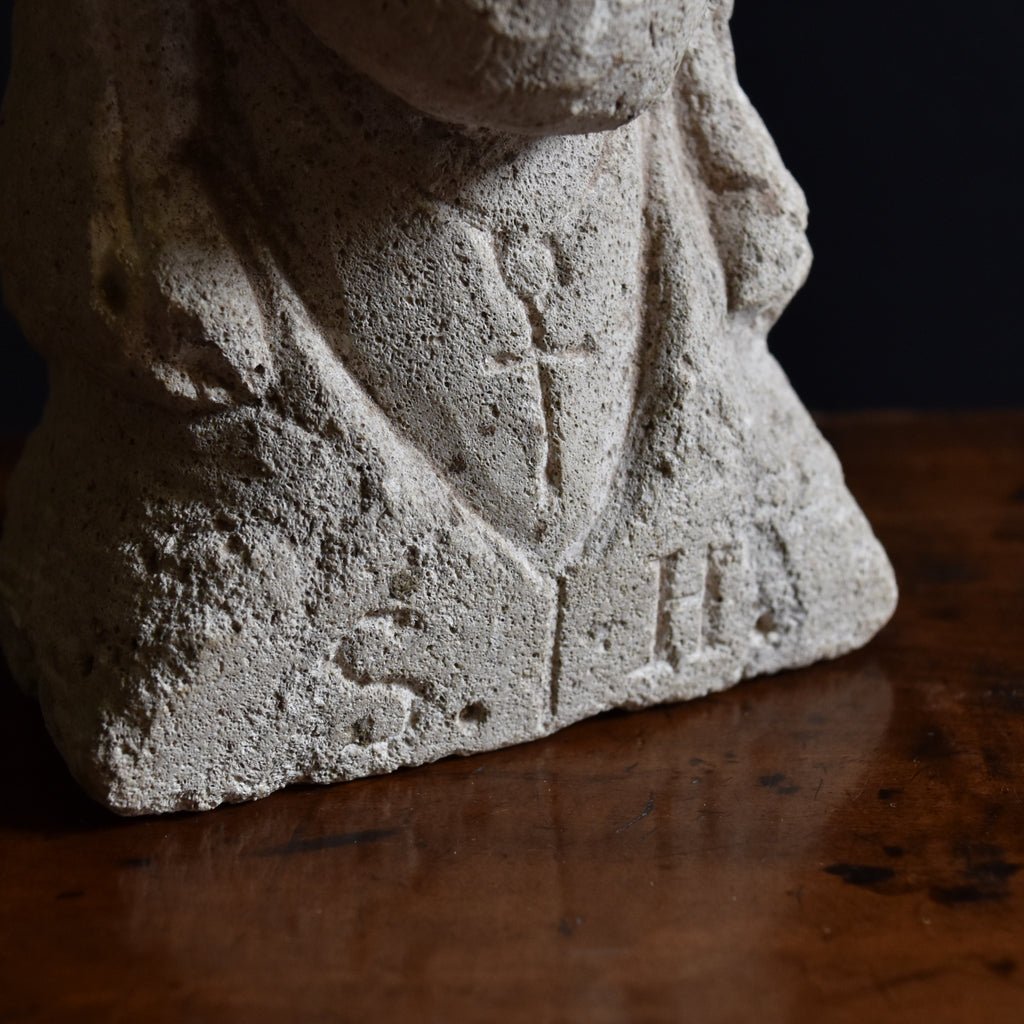 17th Century Carved Limestone Church Corbel Portraying a French Saint.